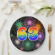 Dieses fröhliche, farbenfrohe und lustige Papier-Platte-Design verfügt über eine große Zahl "63" mit einem Regenbogenspektrum inspirierte Muster. Es zeichnet sich auch durch ein lebendiges und aufregendes Feuerwerk inspiriert. Der Hintergrund ist schwarz. Teller wie diese können sich bei einem Party, das zum 63. Geburtstag von jemandem abgehalten wird, einem 63. Jahrestag oder einem anderen 63. Ereignis, gut nutzen lassen. [~Z0000490]