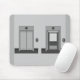 Metallbüros Gebäude Aufzug auf grauem Hintergrund. Geschlossene und offene Türen.