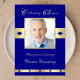 Diese 65. Geburtstagsfeier lädt mit einem Foto der Geburtstagsfeier zum Brennpunkt mit goldenen Akzenten auf marinebasischem Hintergrund. Über dem Foto erscheint der Begriff "65 Jahre feiern". Unter dem Foto erscheinen die Worte "Bitte schließen Sie sich uns an, um zu ehren" und der Name der Ehre. Unten ist eine goldene Bar mit marineblauen Diamantenformen. Auf der Rückseite der Einladung befinden sich alle besonderen Details zur 65. Geburtstagsfeier. Copyright henishouseuse paper
