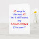 65 may be the new 45 but i still want my senior Citizen Discount! Humorous disign for the 65 year old who sees the humor in getting older. Makes a great 65th birthday gift