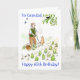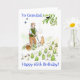 Une carte d'anniversaire du 65e anniversaire pour un grand-père avec un homme qui aime écouter le chant des oiseaux tout en s'occupant du potager. Le chat regarde et les papillons sont sortis sous le soleil, d'une aquarelle de Judy Adamson. (Autres âges et membres de la famille disponibles sur demande.)
