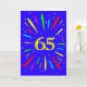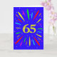 Une carte explosive de 65ème anniversaire ! Quelle merveilleuse façon d'envoyer des salutations d'anniversaire. Le numéro 65 en jaune vif avec une explosion de couleurs vives et d'étoiles.