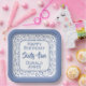 This unique numeric design features a blue and white random number pattern with the milestone number 65 displayed in various sizes and angles. A white rounded square serves as the center for your text, surrounded by blue and white elements.