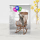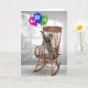 Spielende Tischtenkatze stehend auf einem Holzrocksessel und das Streben nach einem farbenfrohen Ballonpudel zum 66. Geburtstag. Die Altersnummer kann geändert werden.