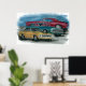 Cette impression intitulée "'67, '68 & '69 Camaros" reflète une époque révolue mais toujours recherchée aujourd'hui. Le design original a été réalisé en écaille, aquarelle et aérobrossé.