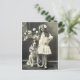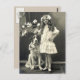 Reproduktion einer Vintagen Postkarte mit einem hübschen Kind und ihrem Hund