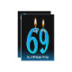 Aqua et bleu dégradé arrière - plan avec des globes oculaires sur des bougies pour l'invitation de fête du 69ème anniversaire.