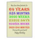 Carte de 69e anniversaire comptant les années, jours, mois, heures et minutes. Une carte pour réfléchir ! Les années bissextiles ont été prises en compte !