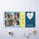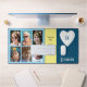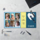 Tapis de bureau pour un ordinateur portable / ordinateur. Idée cadeau pour n'importe qui. Remplacez les 6 photos par vos photos préférées. Ajoutez les initiales et le nom. Bleu, jaune et blanc avec de courtes phrases positives.