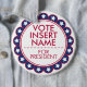 Egal, ob Sie für die Führung des Landes, Ihrer Stadt, Ihrer Schule, Ihrer Arbeit oder für die unabhängige Unterstützung Ihres Lieblingskandidaten eintreten, dieser benutzerdefinierte Pinback-Button wird bemerkt. Personalisieren Sie diese Schaltfläche einfach mit Ihrem eigenen Namen und Titel oder einem anderen benutzerdefinierten Text. Dieses Design ist in Rot, Weiß und Blau gehalten, mit einem Kreis von weißen Sternen. (Tipp: Für einen zweisprachigen Kandidaten wie "Vice President" können Sie das Wort "For" in "Vice" ändern.) Keine Mindestbestellmenge und keine Einrichtungsgebühr.