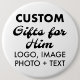 Eigene Geschenke für Ihn personalisiert 6" Riesenrundknopf Button Abzeichen. Laden Sie Logo, Foto, Bild, Design und fügen Sie Ihren eigenen Text zu Ihrem eigenen personalisierten Geburtstag, Weihnachten, Vatertag, Valentinstag Feier, Bürogeschenke für ihn (Mann, Männer, Mann, Freund, Vater, Vater, Vater, junger Mann, Sohn).
