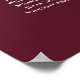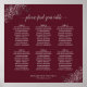 Ce tableau de 6 places est à la fois simple et élégant avec du texte gris sur un arrière - plan bordeaux et un faux feutre argenté en dentelle dans les coins. Le titre dit "s'il vous plaît trouvez votre table" dans une élégante calligraphie de script. Sophistiqué et chic. Comprend l'assignation de table pour 60 personnes avec 10 sièges par table.