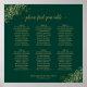 Ce tableau de 6 places est à la fois simple et élégant avec du texte doré sur un arrière - plan couleur vert émeraude et du fil floral en dentelle dans les coins. Le titre dit "s'il vous plaît trouvez votre table" dans une élégante calligraphie de script. Sophistiqué et chic. Comprend l'assignation de table pour 60 personnes avec 10 sièges par table.