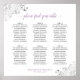 Ce tableau de 6 places est à la fois simple et élégant avec un texte gris foncé et violet clair ou lavande sur un arrière - plan blanc et un faux feutre argenté en dentelle dans les coins. Le titre dit "s'il vous plaît trouvez votre table" dans une élégante calligraphie de script. Sophistiqué et chic. Comprend l'assignation de table pour 60 personnes avec 10 sièges par table.