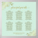 Ce tableau de 6 places est à la fois simple et élégant avec du texte en or sur un arrière - plan vert clair ou de couleur néo-menthe et du fil floral dentelle dans les coins. Le titre dit "s'il vous plaît trouvez votre table" dans une élégante calligraphie de script. Sophistiqué et chic. Comprend l'assignation de table pour 60 personnes avec 10 sièges par table.