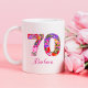 70 ans 70e anniversaire floral rose lilas mug Photographié et conçu avec amour Personnalisez avec le prénom de la fille d'anniversaire. Bon appétit !
