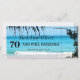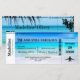 Une belle image du bord de mer est l'arrière - plan de cette invitation de la Boarding Pass Destination Tropical beach. Une invitation personnalisée de destination amusante. Plage tropicale avec bleu aqua et texte moderne.
