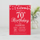 70. Geburtstag Einladung mit String Lights. Roter Hintergrund 13. 15. 16. 18. 20. 21. 30. 40. 50. 60. 70. 80. 90. 100. Jegliches Alter.