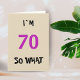 Eine tolle Grußkarte für jemanden, besonders für sie (wegen des Farbschemas schwarz - pink), der 70. Geburtstag feiert. Es kommt mit einem lustigen Zitat, ich bin 70 so was, und ist perfekt für eine Person mit einem Sinn für Spaß.