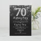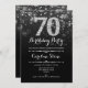 Einladung zum 70. Geburtstag. Elegantes Schwarz-weißes Design mit Imitaten Glitzer Silber. Erwachsener Geburtstag. Mit Diamanten und Drehbuch Schriftart. Männer oder Frauen laden ein. Ideal für eine stilvolle Geburtstagsfeier. Nachricht, wenn Sie weitere Anpassungen benötigen.