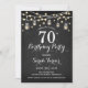 Einladung zur 70. Geburtstagsfeier. Rustikales Design mit schwarzem Chalkboard-Muster. Mit Maurerkirschen und Feenschliffleuchten. Kann in jedem Alter angepasst werden! Bitte schreiben Sie mir, wenn Sie weitere Anpassungen benötigen.