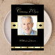 Das Foto der Geburtstagsehre ist der Mittelpunkt dieser großen 70. Geburtstagsfeier, die in Schwarz mit goldenen Details gezeigt wird. Sie können den Namen der Geburtstagsehre unter das Foto legen, was eine ganz individuelle Einladung zum 70. Geburtstag ausmacht. Copyright henishouseuse paper