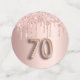 Girly und feminine Confetti für eine 70. Geburtstagsfeier. Eine Rose Gold Imitate metallisch, Folie aussehend mit Imitaten Rose Gold Glitzer Tropfen. Personalisieren und fügen Sie ihren Namen/Text hinzu. Dunkle Rose goldfarbene Buchstaben. Einige Konfetti-Chips mit Namen und Datum, andere mit der Nummer 70 geschrieben mit einem Ballon Stil Schriftart, und mit dem Text Happy Birthday.