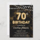 Ces invitations à la fête du 70e anniversaire comportent un numéro d'or et des ballons de papier à lettres avec des lampes à cordes sur un arrière - plan moucheté noir et violet. Personnalisez le texte avec votre propre libellé.