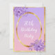 Une carte d'invitation féminine et chic pour un 70ème anniversaire. Glamour à l'or rose élégant et à dégradé ultra violet en toile de fond. Avec un cadre en faux or et des fleurs à l'eau couleur violet et violet. Devant le texte : 70e fête d'anniversaire dans un écriture manuscrite, en lettres blanches. Retour : or Rose et violet arrière - plan et modèles pour le nom et les détails de la fête.
