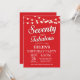 Invitation du 70e anniversaire avec String Lights Arrière - plan rouge. Fête d'anniversaire de la femme. Soixante-dix et fabuleux. N'importe quel âge. Pour plus de personnalisation, cliquez sur le bouton "Customiser" et utilisez notre outil de conception pour modifier ce modèle.