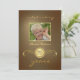 Invitations personnalisées de fête du 70e anniversaire avec photo personnalisée — Invitations vintages élégantes d'anniversaire d'or d'époque ornées d'accents d'or et de monogramme. Ajoutez votre propre photo et customisez le nom, la date et les détails de votre célébration heureuse. Parfait pour les photos contemporaines ou vintages. Correspondance des cartes postales et de remerciements disponibles.**IMPORTANT : Pour les cartes d'invitation standard 5 x 7. Cliquez sur "CUSTOMISER l'informatique" pour changer la taille. Autres couleurs et styles disponibles dans la galerie.