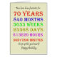 Carte de 70e anniversaire comptant les années, jours, mois, heures et minutes. Une carte pour réfléchir ! Les années bissextiles ont été prises en compte !