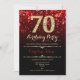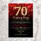 Invitation du 70e anniversaire. Elégant design rouge noir blanc avec parties scintillant d'or. Anniversaire adulte. Comprend des diamants et des caractères de script. Invitation anniversaire homme ou femme. Parfait pour une fête d'anniversaire élégante. Message-moi si vous avez besoin d'une personnalisation plus poussée.