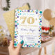 Invitation du 70e anniversaire de la fête d'anniversaire de la fête du violet, de la turquoise et de l'or