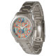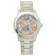 Diese Frauenuhr hat ein Design von Blume in Orange-, Blau- und Cremetönen der 1970er Jahre.