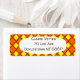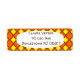Diese Rücksendeadressen-Aufkleber haben ein Design von massiven gelben Diamanten in braunen Diamantschichten auf einem orangefarbenen Feld in den 70er Jahren.