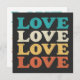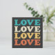 70er-Stil LIEBE Typografie in einem bedrückten wiederholen Design in Retro-Farben. Schwarz auf dem Vordergrund hinzugefügt, kann aber auf Weiß oder Ihre Wahl der Farbe geändert werden. Design mit einem transparenten Rücken auf die Rückseite hinzugefügt.
