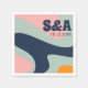 Vintage Retro-Groovy-Wellen aus den 1970er Jahren personalisierte Hochzeitsmonogramm-Papierservietten in groovy fett formatierter Typografie und Pastellfarben inklusive Rosa und Blau. Dieses Produkt ist leicht zu bearbeiten. Wenn Sie Hilfe bei der Anpassung dieses Produkts benötigen oder mehr passende Produkte für diese Sammlung benötigen, senden Sie mir bitte eine Nachricht über Zazzle.