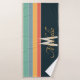 70er Retro Mit Monogramm rosa und Navy Blue Streif Badhandtuch Set