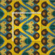 Gewebe inspiriert vom 60's-70s mit einem Senfgelbhintergrund und stilistischen Tulpen mit boho Dekoration. Die Hintergrundfarbe kann besonders angefertigt werden.