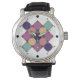 Uhr, Vintage Männeruhr mit schwarzem Lederarmband