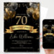 70th Birthday Invitation Template: Black & Gold Ba Einladung