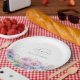 Perfect table decor for a September birthday party. Aster is the birth flower for that month. It forms a pretty watercolor bottom border on this floral personalized paper plate. The birthday guest of honor's name, age and birthdate are placed above it using elegant calligraphy and typography. All text is editable.