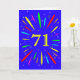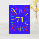 Eine explosive 71. Geburtstagskarte! Was für eine wunderbare Art, Geburtstagsgrüße zu schicken. Die Zahl 71 in hellgelb mit einer Explosion von hellen Farben und Sternen.