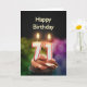 Ein Geburtstagskuchen mit Kerzen. Die Kerzen bestehen aus der Nummer 71, für einen 71. Geburtstag. Eine Geburtstagskarte für jeden geeignet.