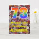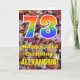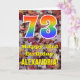Die Vorderseite dieser bunten, rustikalen und naturlich inspirierten Geburtstagskarte zeigt eine große Zahl "73" mit einem Regenbogenspektrum inspiriert Muster. Es enthält auch die Meldung "Happy 73. Geburtstag", und einen individuelle Name. Die Vorderseite zeigt einen Hintergrund mit rustikalen gefallenen Herbstblättern. Im Inneren befindet sich eine individuell angepasste Geburtstagsgrüßbotschaft, oder man könnte sie löschen und leer verlassen werden, wenn eine Nachricht von Hand geschrieben werden soll. Eine personalisierte Geburtstagskarte wie diese könnte eine lustige Art sein, Geburtstagwünsche an jemanden zu senden, der gerade seinen dreiundsiebzigsten Geburtstag feiert. [~Z0000384]