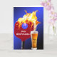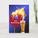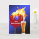 Rotes Pickleball-Paddel mit blauem Ball in Flammen und Bierglas auf hellblauem Hintergrund zum 75. Geburtstag. Die Hintergrundfarbe kann geändert werden. Das Geburtstagsalter kann geändert werden. Alle Texte können bearbeitet werden.