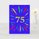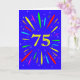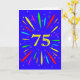Eine explosive 75. Geburtstagskarte! Was für eine wunderbare Art, Geburtstagsgrüße zu schicken. Die Zahl 75 in hellgelb mit einer Explosion von hellen Farben und Sternen.