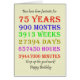 Carte de 75e anniversaire comptant les années, jours, mois, heures et minutes. Une carte pour réfléchir ! Les années bissextiles ont été prises en compte !