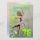 Une belle fée de ballerine dansant sur une invitation à la fête d'anniversaire. La ballerine porte un tutu blanc, et a des traces de fleurs venant de ses cheveux. Elle danse à travers un pré rempli de marguerites.